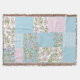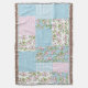 Pink, Blue, Green Apple Blossom Faux Patchwork Throw Blanket