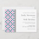 Custom 40th Birthday party invitations in elegant and pretty bright fuchsia hot pink, dark navy blue, charcoal grey, and white fun and retro circles and diamonds geometric pattern. Add your name and party details for a unique and stylish 40th birthday party invitation.