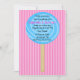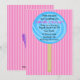 Start your celebration off right with this cute, adorable girls birthday invitation. It is a large bright blue lollipop on a dark and light pink striped background. Check out the many other colours and designs in this line. Also the many other products such as shirts, thank you cards, postage, and many more. © JW Illustrations