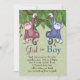 Adorable pink and blue monkey gender reveal party invitations. Add your details to the front and/or back by adding your event details, font style, font size & colour, and wording. Some graphics graphics©delightful-doodles. Please note - all of the invitation designs you will find on Zazzle are printed graphics on flat paper stock with no actual jewels, bows, raised, embossed, or added parts or pieces.