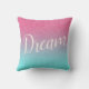 Feminine pink glitter look with blue reversible throw pillow has a glitter effect. One side has name and monogram, the other side says Dream. Put the side to the front that best suits your mood that day. All text can be customised for your name, monogram, catch phrase, favourite quote, whatever suits your needs. For that room with feminine, girly, or diva decor.