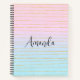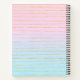 Spiral notebook with a cool abstract pattern. Pastel gradient in pink and blue colours with thin gold stripes. The gold stripes/lines are faux gold glitter.