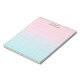 A notepad with a cool abstract pattern. Pastel gradient in pink and blue colours with thin gold stripes. The gold stripes/lines are faux gold glitter.