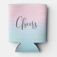 Can cooler with a cool abstract pattern. Pastel gradient in pink and blue colours with thin gold stripes. The gold stripes/lines are faux gold glitter.