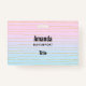 Name tag with a cool abstract pattern. Pastel gradient in pink and blue colours with thin gold stripes. The gold stripes/lines are faux gold glitter.