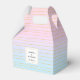 Wedding favour boxes with a cool abstract pattern. Pastel gradient in pink and blue colours with thin gold stripes. The gold stripes/lines are faux gold glitter.