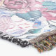 A beautiful small blanket that is perfect for covering your legs while curled up in  front of the fire, or for a decorative touch on the sofa.  We also think it looks brilliant as a Christmas table centerpiece.  We are delighted with it. The colors are absolutely perfect.  Vibrant yet traditional.  The pattern retains its lovely details despite the texture of the fabric.  Very classy product that will not disappoint as a gift.