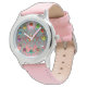 PINK BLUE TEAL DAMASK AND 3D COLORFUL GEMSTONES WATCH