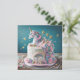 FUN UNICORNS KIDS BIRTHDAY LAYER CAKE ON THE FRONT OF THE CARD. COMPLETELY EDITABLE COPY ON THE BACK.
