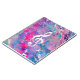 A girly pink and turquoise blue whimsical watercolor painting of a classical musical note and unique white paint texture treble clef. The perfect gift idea for music lovers, art class students and teachers, artists, musicians and for her.