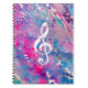 Pink Blue Watercolor Paint Music Note Treble Clef Notebook