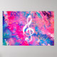Pink Blue Watercolor Paint Music Note Treble Clef Poster