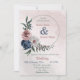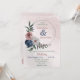 pink blue & white floral greenery wreath wedding invitation