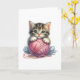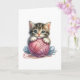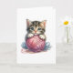 Pink Blue Yarn & Bright-Eyed Kitten Blank Greeting Card