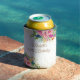 Elegant pink, blue, and yellow watercolor floral on white 40th (or any age) birthday party can cooler, personalised with the name of the guest of honour and her age. Contact us for help with customisation or to request matching products.