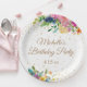 Elegant pink, blue, and yellow watercolor floral on white birthday party paper plates. Contact us for help with customisation or to request matching products.