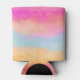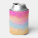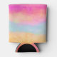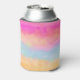 Can cooler with an image of a painted abstract design. Yellow blue and pink stripes. Bold and vibrant background pattern.