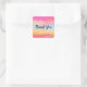 Thank you stickers with an image of a painted abstract design. Yellow blue and pink stripes. Bold and vibrant background pattern.