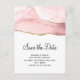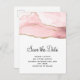 Save the date wedding postcard with an elegant and trendy agate design. Pink blush watercolor with a subtle marble agate look and gold glittery ribbon layered in between.