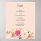 Let your guests know what is going on at your bar with this beautiful pink blush blooming floral bar sign. with a pink background