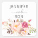 Pink Blush Blooming Floral Name - White Square Sticker