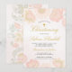 Pink Blush Floral Girl Christening Gold Cross Invitation