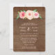 Wedding invitation custom template cards in rustic blush pink watercolor flowers pattern with wood background and hand lettered style text. Customise these invitations with your wedding details. Available in matching products for all of your wedding needs.