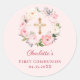 Pink blush floral wreath First Communion Classic Round Sticker