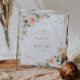 A floral design with a modern gold geometric frame and pink blush watercolor flowers. The text an colours on this sign poster can be edited.