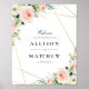 A floral design with a modern faux gold geometric frame and blush watercolor flowers. The text and colours on this sign poster can be edited.