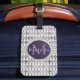 A stylish white and shimmery pink blush diamond harlequin pattern with a purple sphere in the middle with glam glittery edging where you can personalise it with a letter and name. Trendy chic vibes.