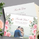 Elegant romantic blush pink floral photo wedding save the date card featuring beautiful watercolor roses with green foliage and leaves. +++++++++ Easy to personalise with your photo and text on both sides! +++++++++++ Suitable for garden theme, floral, spring summer or autumn fall backyard outdoor or rustic modern barn or farmhouse weddings.
