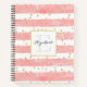 A personalised spiral notebook with an elegant pattern. Featuring pink blush coloured stripes and faux gold confetti glitter scattered around.