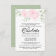 Beautiful invitation for the baptism of your daughter. Two soft pink blush roses are tucked into their sage green leaves. Your daughter's full name is featured. Her first name is in a large beautiful script. Her middle and last names follow in a simple modern text. The template text is very easy to customise. The back of the baptism invitation is is also soft sage green with a subtle leaf pattern.