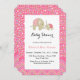 Pink Bohemian Elephant and Chevron Baby Shower Invitation