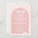 Pink Boho Arch Daisy Young Wild and Three Birthday Invitation