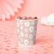 Add a finishing touch to your little one's birthday party with these paper cups, featuring a pattern of daisies on a pink background.