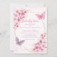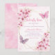 Modern Elegant Pink Boho Floral Butterfly Kisses Girl Baby Shower Invitation