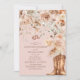Chic Bohemian Design: Adorned with whimsical floral arrangements and earthy tones, this invitation captures the essence of boho style while incorporating rustic western elements, creating a warm and inviting feel.