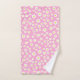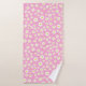 This cute and groovy bath towel set features spring bohemian daisies on pink.