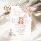 Pink Boho Teddy Bear Pampas Grass Girl Baby Shower Invitation