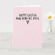 This card features a soft pastel pink background with a cheeky holiday greeting set in thick, casual black lettering across the upper-middle area. The text looks slightly uneven, like it was quickly written by someone close to you, giving it an intimate, conspiratorial tone. The message sits centred with generous open space around it, letting the words do most of the talking without extra decoration. Just below the lettering, a small heart outline in black adds a gentle romantic cue, like a quiet wink between partners or close friends. The sweet rosy backdrop contrasts with the more daring line, creating a flirty push-and-pull that feels both affectionate and teasing. A tiny 🌷 detail can easily be imagined alongside the soft colour palette, reinforcing the seasonal setting without crowding the design. The heart symbol rests beneath the main line, centred on the pink field, drawn as a simple black outline.