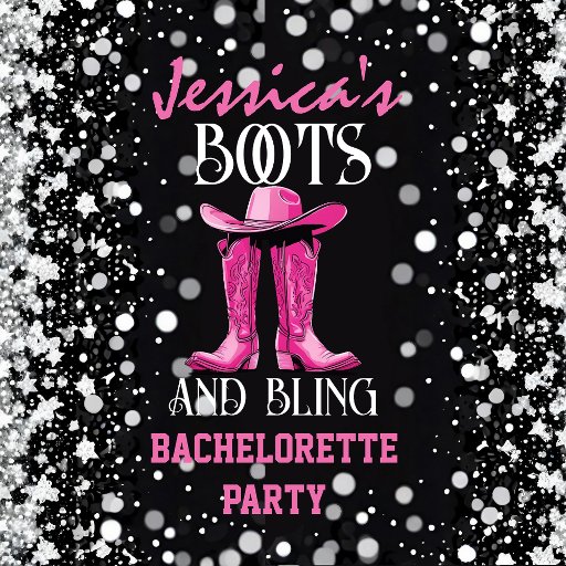 Pink Boots and Bling Bachelorette Party, this country cowgirl design features a pair of Pink Boots with text saying, "Boots and Bling Bachelorette Party". A great design for any girl's Bachelorette Party.