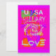 White: Employed for the "USA" and "LOVE" text, offering a strong contrast against the background colours to ensure the words stand out prominently.