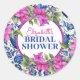 Pink Bougainvillea Blue Tile Bridal Shower Classic Round Sticker
