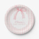 Pink bow and gingham preppy baby shower paper plate