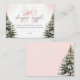 Baby shower books for baby enclosure card that features a pink bow with snowflakes, a snowy pine tree, perfect for a winter themed baby shower.
