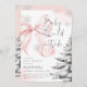 The blush pink bow "Baby It's Cold Outside" baby shower invitation template is the perfect way to invite your guests to a chic and elegant winter-themed baby shower. Featuring a soft, blush pink bow adorned with delicate snowflakes and a snowy pine tree, with the charming script "Baby it's cold outside" message, this design exudes a modern yet classic winter wonderland vibe.