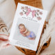 Cute birth announcement card with a photo of your newborn featuring illustration of a pink bow and flowers.