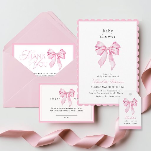 Pink Bow Baby Shower Books for Baby Enclosure Card